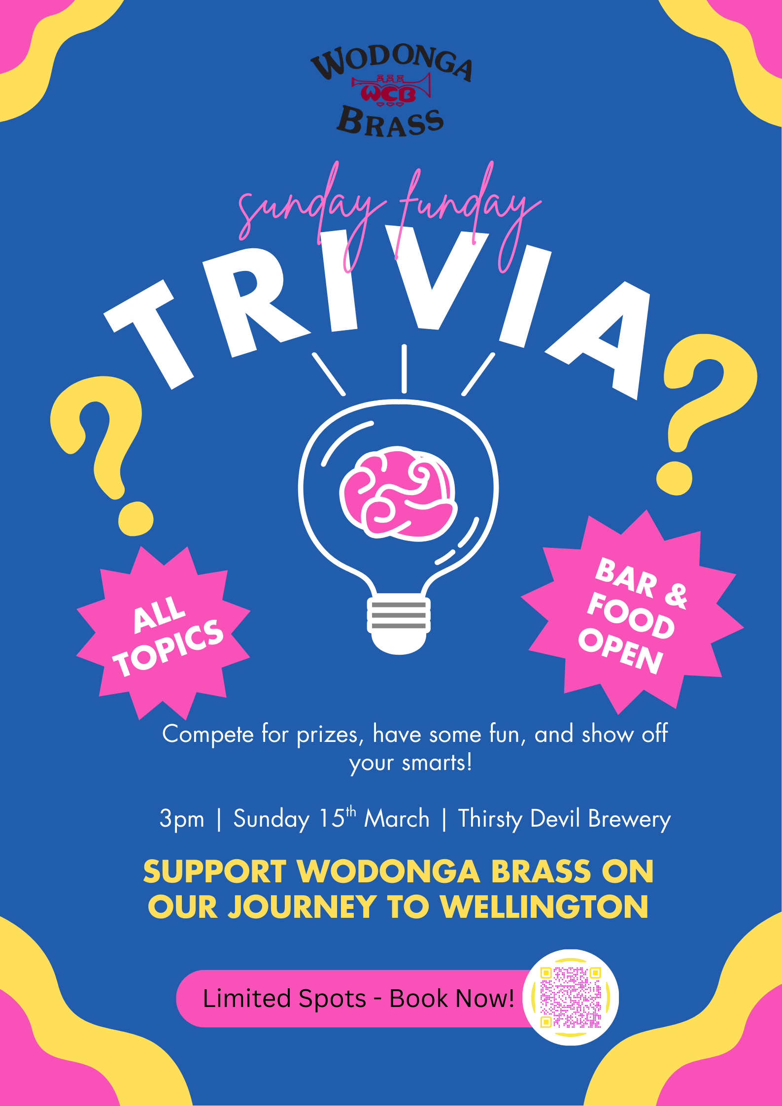 Get ready for an afternoon of laughs, friendly competition, and feel-good fun at Sunday Funday Trivia, hosted by Wodonga Brass!